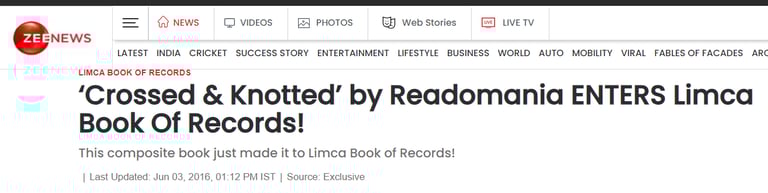Ayan's Crossed & Knotted made it to the Limca Book of Records. The Limca Book of Records is iconic for celebrating extraordinary achievements across India, showcasing the nation's diverse talents and setting a benchmark for excellence in various fields.To know more click on the button.